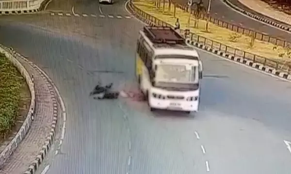 दर्दनाक एक्सीडेंट VIDEO: तेज रफ्तार बस ने बाइक सवार को मारी टक्कर, पहिये से कुचलकर महिला की मौत....