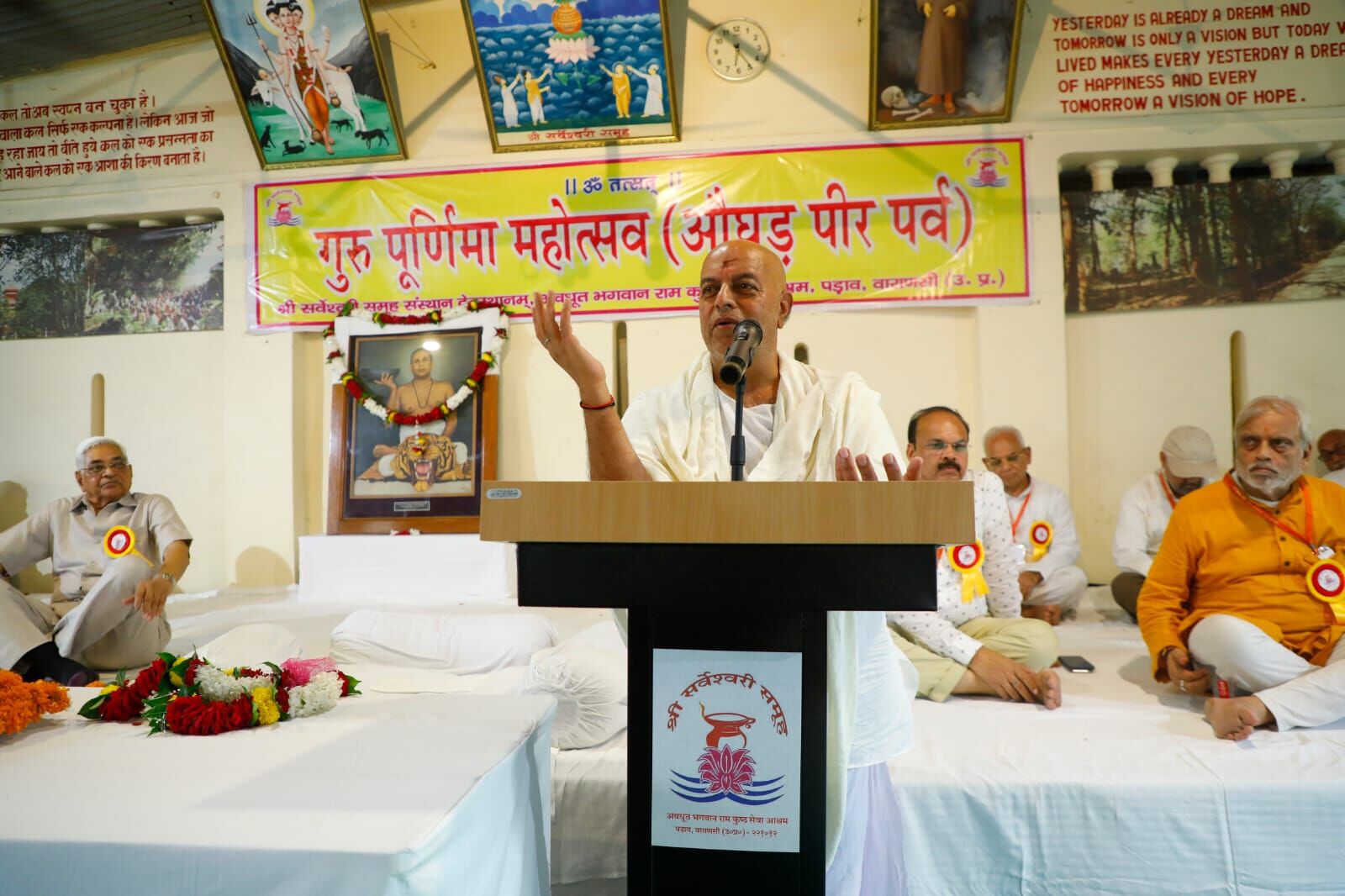 Guru Purnima 2024: वाराणसी। गुरुपूर्णिमा के अवसर पर पड़ाव स्थित अघोर पीठ श्री सर्वेश्वरी समूह पड़ाव आश्रम में आयोजित सायंकालीन गोष्ठी में संस्था के अध्यक्ष पूज्यपाद बाबा औघड़ गुरुपद संभव राम जी ने अपने शिष्यों व श्रद्धालुओं को संबोधित करते हुए कहा कि भक्ति का मकसद दिखावा और दंभ नहीं होना चाहिए। आवश्यकता है अभ्यंतर के दृष्टिकोण की। गुरु हाड़-मांस का शरीर नहीं होता है, गुरुपीठ में जो विचार व्यक्त होते हैं, उन विचारों की परिपक्वता ही हमारी समझ को बढ़ाती है और हमें अज्ञानता से धीरे-धीरे मुक्त करती है। भक्ति अभ्यंतर की वस्तु होती है। अपनी आँखें खोलकर इस संसार और समाज में देखना-समझना होगा और तदनुरूप निर्णय लेने होंगे। “भक्ति सब कोई करे भरमना नहीं टरे”। बाबा कीनाराम जी ने भी कहा है कि “राम नाम सब कोई कहे, राम की करे न कोय”। आज राम को तो पूज रहे हैं लेकिन उनके चरित्र की अनदेखी कर रहे हैं। राम के चरित्र को अपनाना ही राम होना है। लेकिन हम केवल बाह्य रूप में ही अपनी दृष्टि लगाये हुए हैं। मानसिक शक्ति एक बहुत बड़ी शक्ति है जो हमें उबारती है। मानसिकता खराब और विकृत होगी, हमारी संगत अच्छी नहीं होगी तो हम उस चीज को समझ नहीं पायेंगे। अपने-अपने धर्म, मजहब के हिसाब से लोग ईश्वर को पूजते हैं या उसका दंभ भरते हैं। मुझे नहीं लगता कि वह ईश्वर को मानते हैं। सब अपना-अपना उल्लू सीधा करने के लिए या अपने किसी स्वार्थ के लिए ही यह सब करते हैं। हम सबलोग उस ‘एकेश्वर’ की ही संतान हैं।