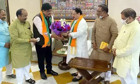 रायपुर 12 अगस्त 2021। छत्तीसगढ़ के पूर्व IAS गणेश शंकर मिश्रा ने बीजेपी का दामन थाम लिया है। छत्तीसगढ़ में बतौर IAS कई महत्वपूर्ण पदों पर रहे जीएस मिश्रा ने भाजपा सुप्रीमो जेपी नड्डा की मौजूदगी में भाजपा की सदस्यता दिलायी। जीएस मिश्रा के साथ भाजपा के कई सीनियर लीडर भी मौजूद रहे। भाजपा के प्रदेश अध्यक्ष विष्णुदेव साय के अलावे बिलासपुर सांसद अरूण साव, राजनांदगांव सांसद संतोष पांडेय और पवन साय मौजूद थे।