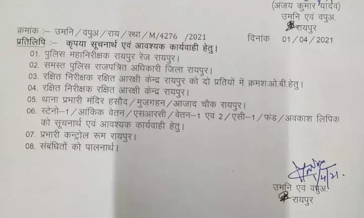 चार इंस्पेक्टर के तबादलेः टीआई अश्वनी राठौर को मंदिर हसौद का प्रभार….वहीं मुजगहन और मंदिर हसौद के निरीक्षक भी बदले