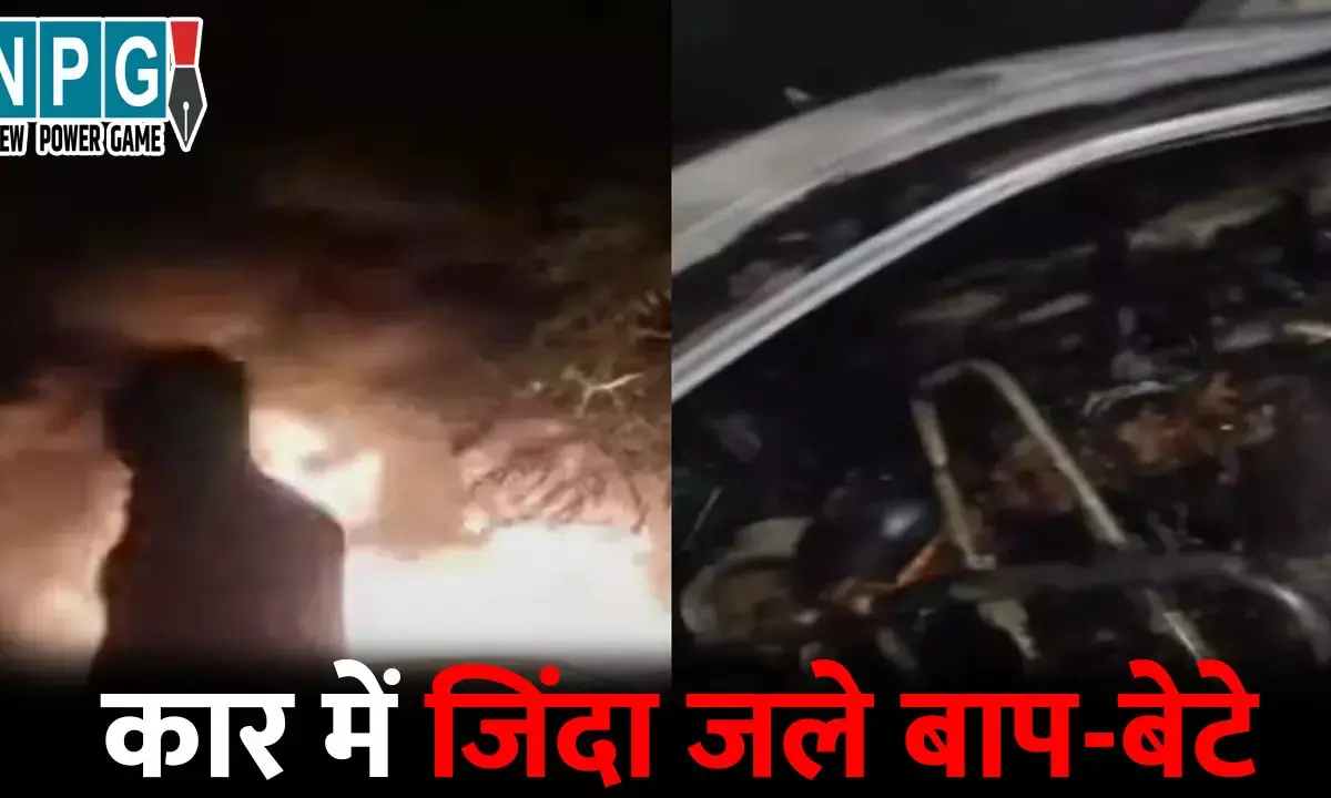 जिंदा जले बाप-बेटे VIDEO: हादसे के बाद कार में लगी भीषण आग, नहीं मिला निकलने तक का मौका