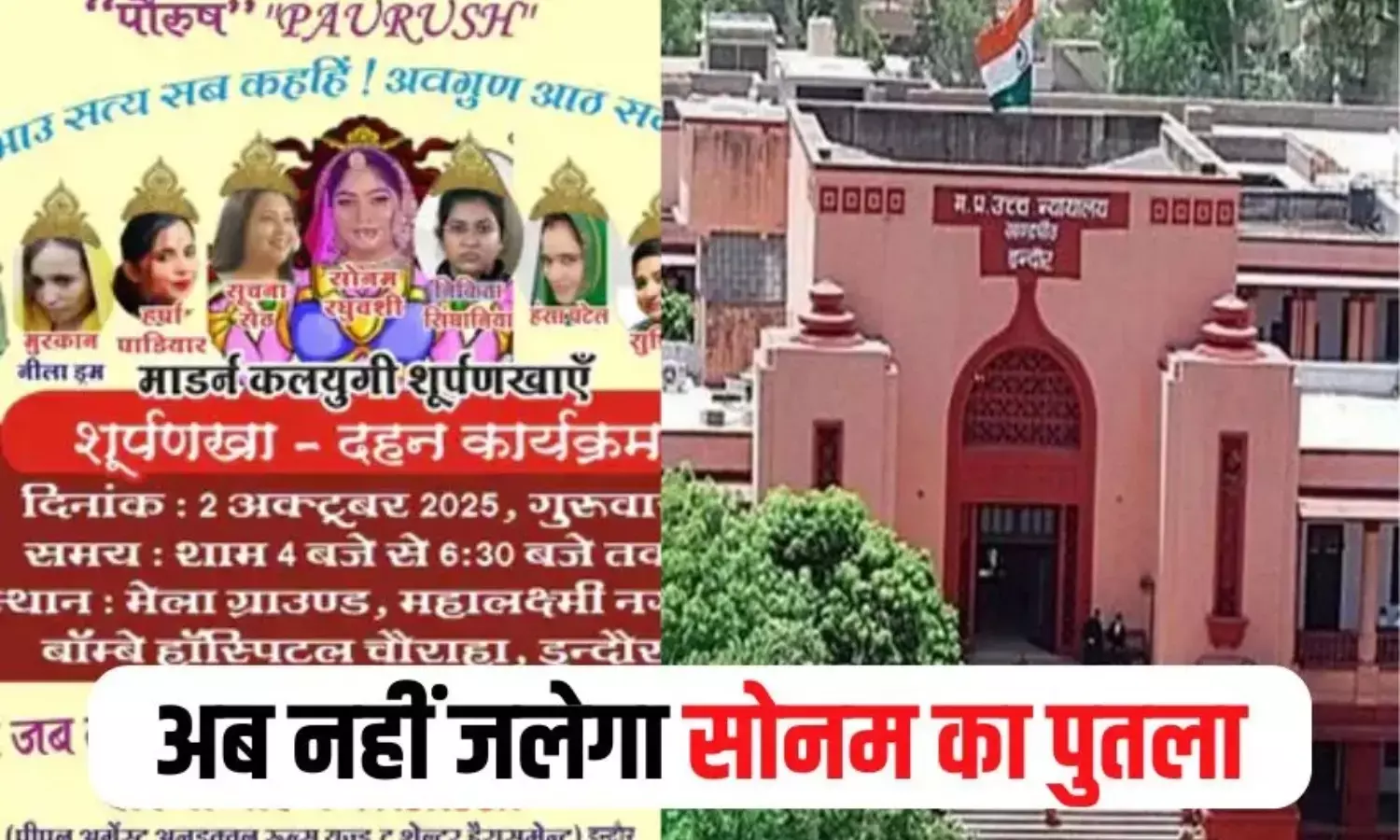 जानकारी के अनुसार, इस बार 'पौरुष' नाम की संस्था ने ‘शूर्पणखा दहन’ नाम से एक कार्यक्रम रखा था, जिसमें 11 सिर वाले पुतले पर उन महिलाओं की तस्वीरें लगाई जानी थीं, जिन पर पति या ससुराल वालों की हत्या जैसे गंभीर आरोप हैं। इस पुतले के बीच में सोनम रघुवंशी की तस्वीर लगाई गई थी, जिन पर अपने पति राजा रघुवंशी की हत्या का आरोप है।