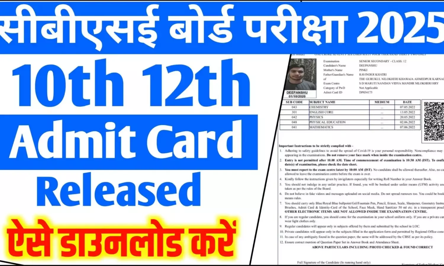 CBSE Admit Card 2025: सीबीएसई 10वीं, 12वीं बोर्ड परीक्षा के लिए एडमिट कार्ड जारी, 15 फरवरी से परीक्षा, जानें कैसे करें डाउनलोड