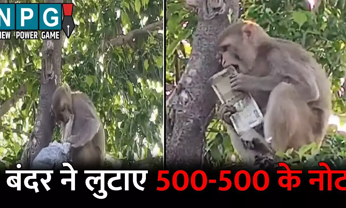 Prayagraj News: बंदर ने पेड़ से लुटाए 500-500 के नोट: लूटने के लिए मची होड़, देखें वीडियो