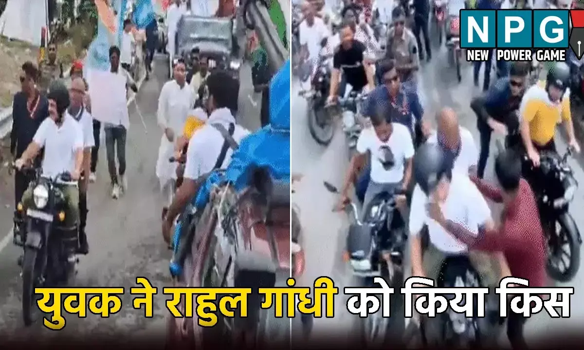 दरअसल, राहुल गांधी वोटर अधिकार यात्रा के 8वें दिन खुद पूर्णिया से अररिया तक बाइक चलाते नजर आए। राहुल गांधी के बाइक पर कांग्रेस प्रदेश अध्यक्ष राजेश राम भी बैठे थे। तभी एक युवक सुरक्षा घेरे को तोड़ते हुए उन तक पहुंच आया और राहुल गांधी के गालो पर किस कर दिया। जिसके बाद राहुल गांधी की सुरक्षा में तैनात गार्ड ने युवक को पकड़ लिया और उसको पीट दिया। इसके बाद युवक वहां से भाग खड़ा हुआ।