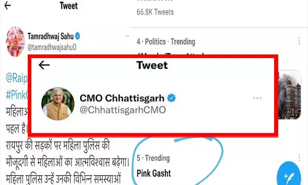 पिंक गश्त ट्वीटर पर किया ट्रेंड राजधानी पुलिस की मुहिम.. CM बघेल, गृहमंत्री ताम्रध्वज ने रिट्वीट कर दी शुभकामनाएँ