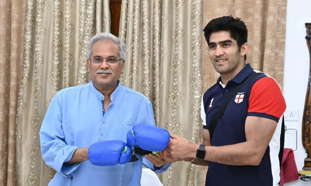 विजेंदर सिंह भारत के पहले ऐसे बॉक्सर हैं, जिन्होंने ओलंपिक में पदक जीता है। विजेंदर ने सीएम बघेल से छत्तीसगढ़ में प्रोफेशनल बॉक्सिंग मैच कराने का आग्रह किया, जिस पर सीएम ने रायपुर में मैच करने की सहमति दी। इस मैच में विजेंदर सिंह का मुकाबला अंतर्राष्ट्रीय मुक्केबाज से होगा। विजेंदर सिंह ने वर्ष 2008 के बीजिंग ओलंपिक में कांस्य पदक जीता था। विजेंदर ने सीएम को बॉक्सिंग ग्लव्स भेंट किए। सीएम ने उन्हें राजकीय गमछा और स्मृति चिह्न भेंट कर सम्मानित किया।
