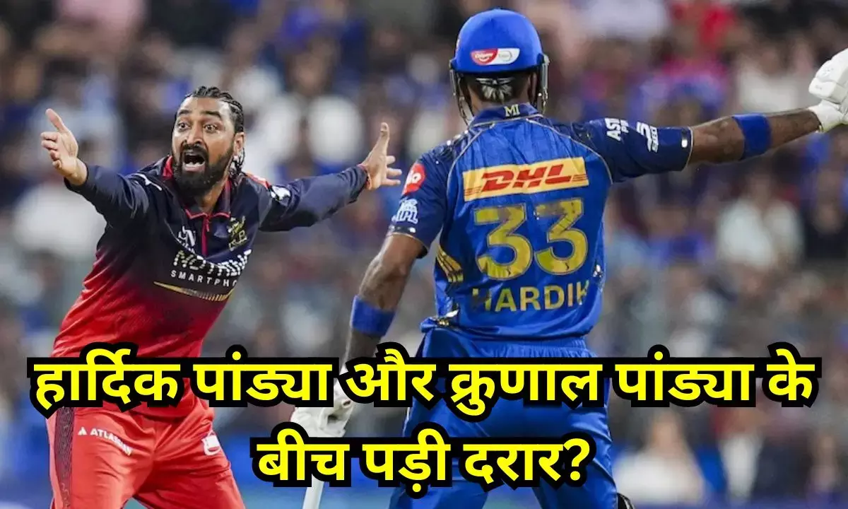 दरअसल, रविवार को मुंबई के वानखेड़े स्टेडियम में रॉयल चैलेंजर्स बेंगलुरु और मुंबई इंडियंस के बीच हुई भिड़ंत के बाद ये बातें की जा रही है क्योंकि मुंबई इंडियंस की कप्तानी कर रहे हार्दिक पांड्या और रॉयल चैलेंजर्स बेंगलुरु के ऑलराउंडर क्रुणाल पांड्या के बीच कोई बातचीत नहीं देखी गई।
