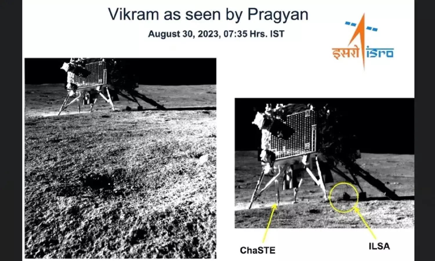 भारतीय अंतरिक्ष एजेंसी ने अपने चंद्रयान-2 मिशन के लैंडर और रोवर को प्रज्ञान और विक्रम नाम दिया था। लेकिन चंद्रमा पर सॉफ्ट लैंडिंग का प्रयास करते समय विक्रम दुर्घटनाग्रस्त हो गया। 23 अगस्त को अपने लैंडर विक्रम ने चंद्रमा की धरती पर सुरक्षित लैंडिंग की थी।