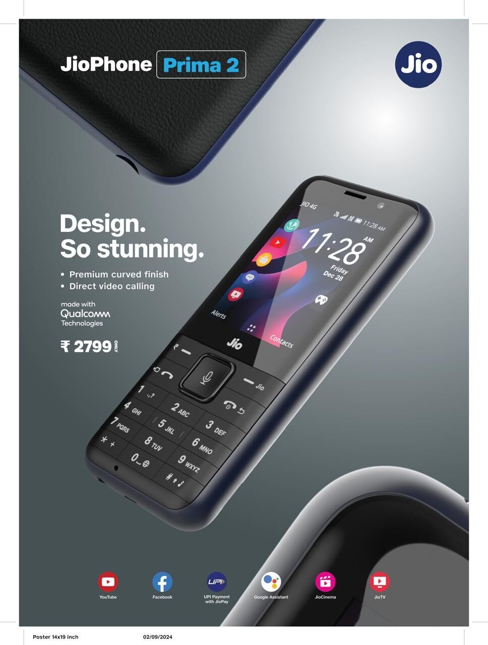 JioPhone Prima 2: जियो ने अपना नया जियोफोन प्राइमा 2 भारतीय बाजार में लॉन्च किया है। नया जियोफोन एक स्मार्ट फीचर फोन है जो ग्राहकों को पूरी तरह से नया और अलग प्रीमियम मोबाइल अनुभव देने जा रहा है। शानदार डिज़ाइन नए फ़ोन की स्लीक और एलीगेंट प्रोफ़ाइल को काफी खूबसूरती से बढ़ाता है। अपनी शानदार लेदर जैसी फिनिश के साथ मैजिक टच को जोड़ने वाला है। जियोफोन प्राइमा 2 न केवल देखने में आकर्षक है, बल्कि पकड़ने में भी एक अलग ही आनंद देता है।