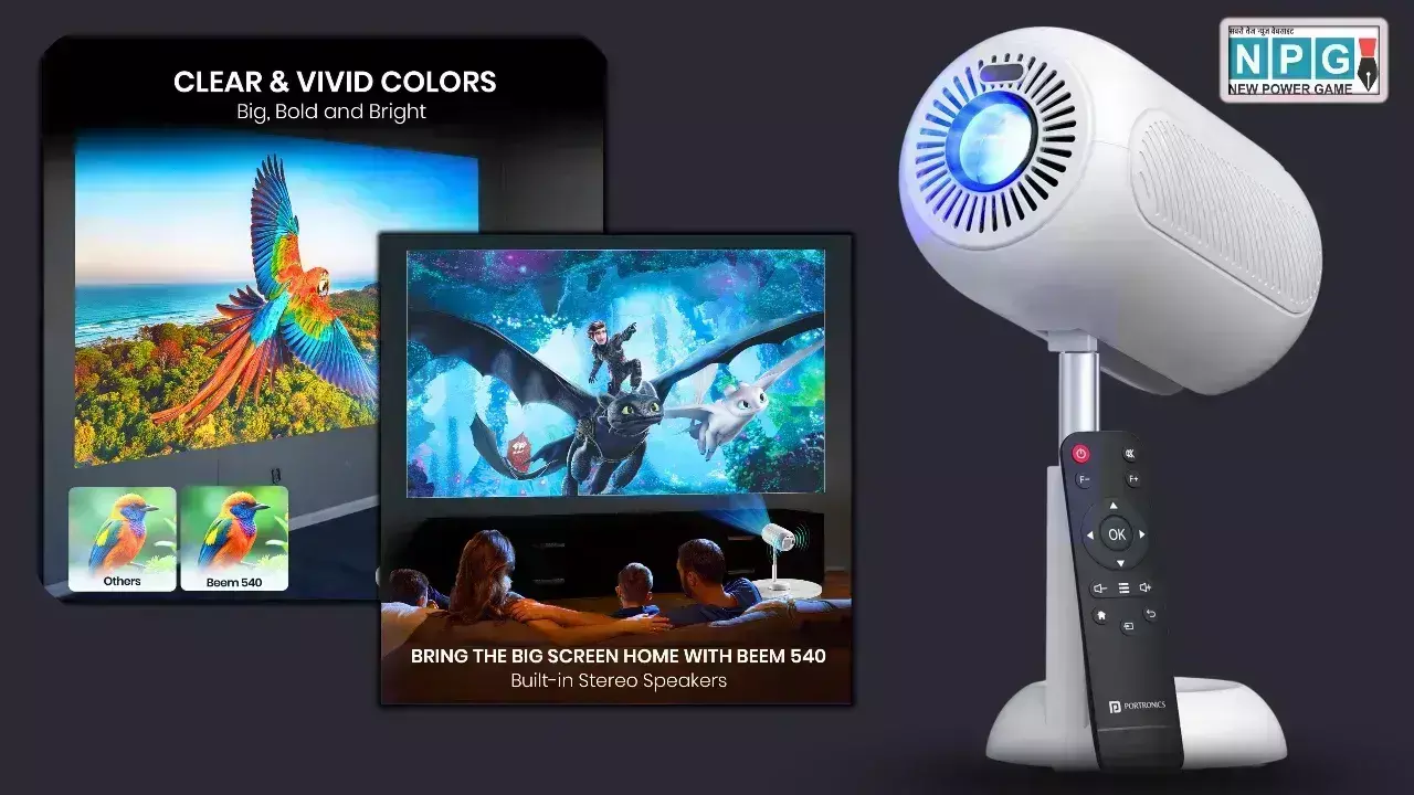 Beem 540 Smart LED Projector Launched in India News Hindi: भारत में पोर्टेबल प्रोजेक्टर सेगमेंट को मजबूत करते हुए Portronics ने अपना नया Beem 540 Smart LED Projector लॉन्च किया है। यह एक स्मार्ट, पोर्टेबल और मल्टीफंक्शन प्रोजेक्टर है, जो खासतौर पर होम एंटरटेनमेंट और ऑफिस प्रेजेंटेशन को ध्यान में रखते हुए तैयार किया गया है। इसमें कई ऐसे एडवांस फीचर्स दिए गए हैं जो इसे इस कैटेगरी में एक अलग पहचान दिलाते हैं। आइए जानते हैं इस लेटेस्ट स्मार्ट प्रोजेक्टर की खास बातें और कीमत के बारें में विस्तार से।