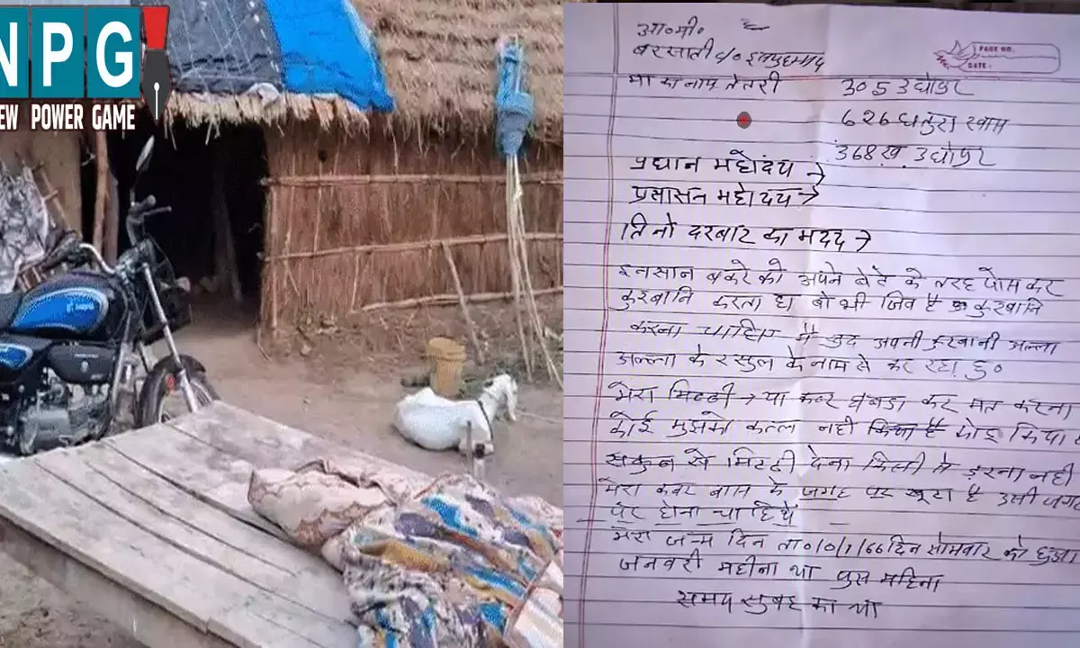 UP News: उत्तर प्रदेश के देवरिया से एक हैरान कर देने वाला मामला सामने आया है, जहां एक वृद्ध ने बकरीद के दिन खुद की कुर्बानी दे दी। जो अब पूरे क्षेत्र में चर्चा का विषय बन गई है। बताया जा रहा है कि उसने बकरी काटने वाले चाकू से ही खुद का गला काट दिया। वृद्ध ने खुद का गला काटने से पहले एक पत्र छोड़ा है।
