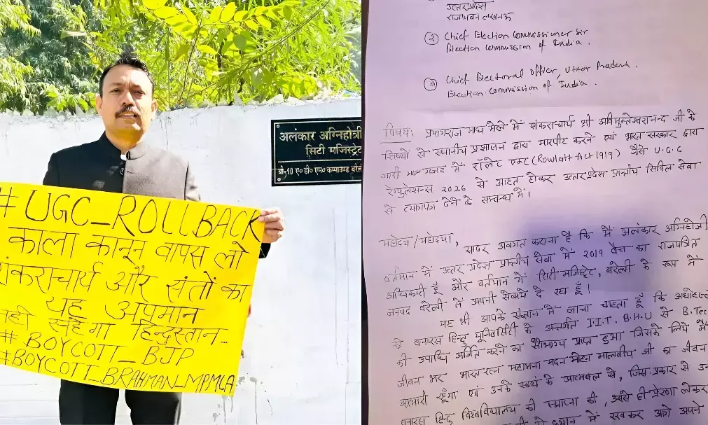 अलंकार अग्निहोत्री ने 26 जनवरी को गणतंत्र दिवस के मौके पर अपना इस्तीफा पत्र सार्वजनिक किया था। इस्तीफे में उन्होंने विश्वविद्यालय अनुदान आयोग के नए नियम 2026 और प्रयागराज माघ मेले में शंकराचार्य स्वामी अविमुक्तेश्वरानंद से जुड़े विवाद का ज़िक्र किया था।