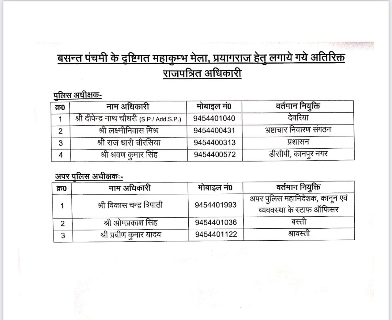 IPS Transfers In UP: 2 फरवरी को बसन्त पंचमी मनाया जा रहा है. महाकुंभ मेला में बसंत पंचमी के अमृत स्नान के लिए बड़ी संख्या में भक्तों की भीड़ उमड़ सकती है. बीते दिन महाकुंभ मेले में मौनी अमावस्या के दिन भगदड़ में 30 लोगों की मौत के बाद सरकार ने बसन्त पंचमी को लेकर पूरी तैयारी कर ली है. प्रयागराज महाकुंभ में सात नए अधिकारियों की तैनाती की गई है.