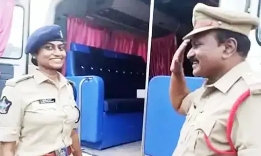 तिरूपति 4 जनवरी 2021। कभी-कभी ऐसी तस्वीरें आ जाती है जो दिल को छू जाती है। एक ऐसी ही तस्वीर आंध्र प्रदेश पुलिस ने अपने ट्वीटर वाल पर डाला है। इस ट्वीट में एक इंस्पेक्टर पिता अपनी DSP बेटी को सैल्यूट कर रहा है। ये तस्वीर आंध्र पदेश के तिरूपति में है, जहां पिता इंस्पेक्टर के तौर पर पदस्थ हैं, जबकि उसी इलाके की बेटी डीएसपी है। ऐसे में जब अधिकारी बेटी का सामना अपने पिता से हुआ तो पिता ने बिना कोई हिचक दिखाये बेटी को सैल्यूट कर दिया। पिता को सैल्यूट मारते देख डीएसपी प्रसांति सुंदर भी सकपका गयी। जबकि इंस्पेक्टर पिता श्याम सुंदर निजी रिश्तों की परवाह किये बगैर सीनियर अफसर के सामने जूनियर की तरह खड़े रहे। इस नजारे को देश मौजूद सभी की आंखें खुशी से भर आईं।