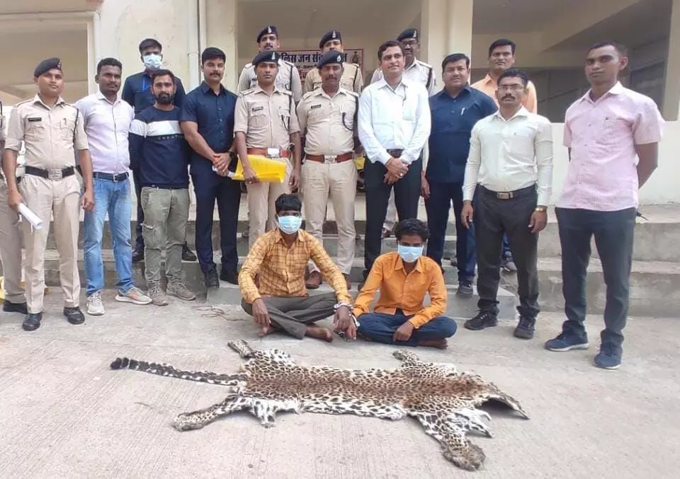 इसी दरम्यान 16 अक्टूबर को सूचना मिली कि एक नीले रंग की मोटरसाइकिल में दो व्यक्ति अपने पास वन्य प्राणी तेंदुआ की खाल रखकर बिक्री करने के लिए ग्राहक तलाश रहा है। साथ ही मोटरसाइकिल से ग्राम बरारी की ओर जा रहे है। इस सूचना पार पुलिस की टीम कार्रवाई करते हुए ग्राम बरारी-कुकरेल मां लोलरदाई मंदिर तिराहा के पास घेराबंदी किया गया। कुछ देर बाद मोटरसाइकिल में दो व्यक्ति को आते दिखे, जिन्हें रोका गया और उनकी तलाशी ली गई। मोटरसाइकिल चला रहे व्यक्ति ने अपना नाम रघुनाथ निषाद पिता नरसिंह निषाद उम्र 22 वर्ष साकिन खिलौली थाना कुंदई जिला रायघर (उड़ीसा) व पीछे बैठे व्यक्ति का नाम विमल यादव 26 वर्ष गरियाबंद बताया। मोटरसाइकिल में पीछे बैठे व्यक्ति विमल यादव अपने पास पीले रंग की प्लास्टिक बोरी भी रखा हुआ था, जिसकी तलाशी लेने पर बोरी में वन्य प्राणी तेंदुआ की 1 नग खाल बरामद हुआ है। तेंदुआ की खाल कीमती करीबन 10 लाख रुपए बताई जा रही है।