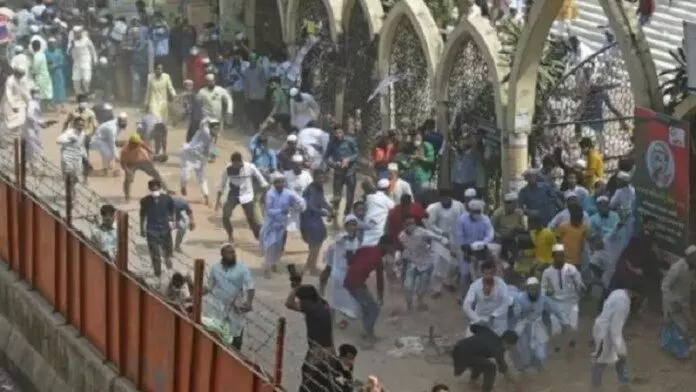 नईदिल्ली 14 अक्टूबर 2021। बांग्लादेश में दुर्गापूजा के दौरान मंदिरों में इस कदर तोड़फोड़ की गई कि दंगे भड़क गए है। इस दंगे में तीन लोगों के मारे जाने और कई लोगों के घायल होने की खबर है। फिलहाल स्थिति को कंट्रोल करने के लिए बांग्लादेश सरकार ने 22 जिलों में अर्द्धसैनिक बलों की तैनाती कर दी है। ताजा मामला है चांदपुर जिले की जहां चरमपंथियों की भीड़ ने फेसबुक पर अफवाह फैलने के बाद हिंदू मंदिर पर हमला कर दिया। इस हमले के दौरान कई राउंड फायरिंग भी की गई जिससे तीन हिंदुओं की मौत हो गई। इस घटना पर बांग्लादेश हिंदू यूनिटी काउंसिल ने ट्वीट करके कहा कि 13 अक्तूबर बांग्लादेश के इतिहास का निंदनीय दिन है। अष्टमी के दिन मूर्ति विसर्जन के मौके पर कई पूजा मंडपों में तोड़फोड़ की गई और हिंदुओं को चोट पहुंचाई गई। हिंदुओं को अब पूजा मंडपों की रखवाली करनी पड़ रही है। आज पूरी दुनिया चुप है। मां दुर्गा अपना आशीर्वाद सभी हिंदुओं पर बनाए रखें।