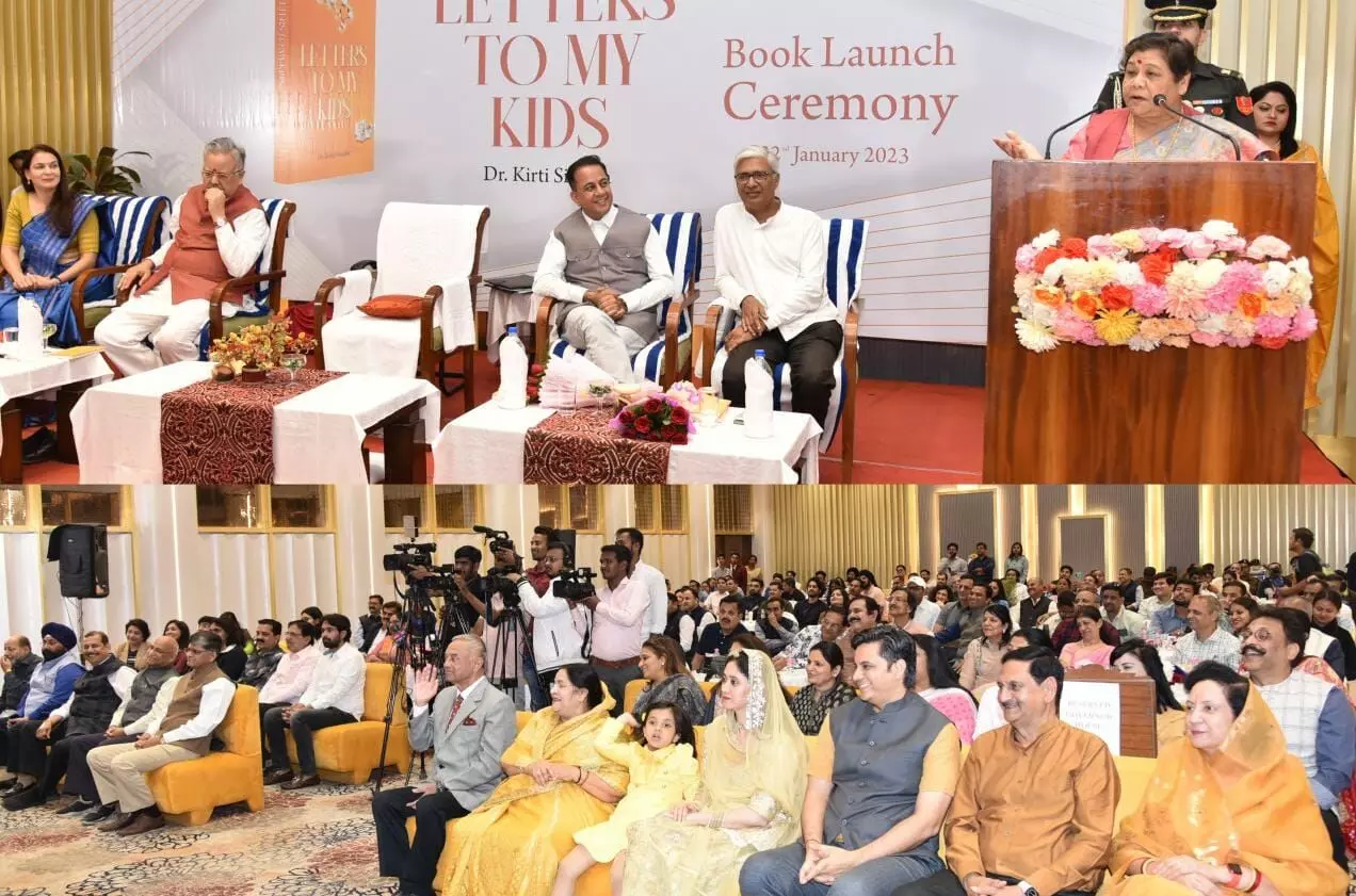 रायपुर। राज्यपाल अनुसुईया उइके ने आज डॉक्टर कीर्ति सिसोदिया द्वारा लिखित किताब ''लेटर टू माई किड्स'' के विमोचन कार्यक्रम में शामिल हुईं। उन्होंनेे कार्यक्रम को संबोधित करते हुए, किताब की लेखिका डॉक्टर कीर्ति का अभिवादन किया और किताब लेखन के उनके उद्देश्य की सफलता के लिए शुभकामनाएं दी। राज्यपाल ने किताब के विषय वस्तु का उल्लेख करते हुए, अपने बचपन के दिनों को याद किया। साथ ही उन्होंने संयुक्त परिवार की महत्ता बताते हुए, प्राचीन भारतीय परंपरा, सांस्कृतिक और सामाजिक मूल्यों को बच्चों की परवरिश और बेहतर समाज निर्माण के लिए महत्वपूर्ण बताया। उन्होंने बताया कि वर्तमान समय में किस कदर बाल्यवस्था के चंचलता भरे जीवन पर तकनीक हावी हो चुकी है। उन्होंने बचपन पर मोबाईल, लैपटाप जैसे तकनीकी यंत्रों के दुष्प्रभाव को भी रेखांकित किया और कहा कि इसके नकारात्मक प्रभावों से बचाते हुए, बच्चों के बेहतर शिक्षा और मानसिक विकास के लिए इसके सदुपयोग को बढ़ावा दें।