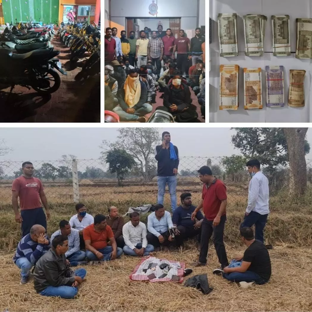 हमाल बन क़र पहुंची पुलिस ने दो दर्जन जुआरियों पकड़ा, दो लाख पचपन हजार नगदी सहित लाखों की संपत्ति जब्त