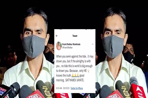 समीर वानखेड़े की पत्नी क्रांति रेडकर वानखेड़े ने शादी की तस्वीरों को ट्वीट किया है। उसके अलावा उन्होंने एक ट्वीट और किया है जिसमें लिखा है