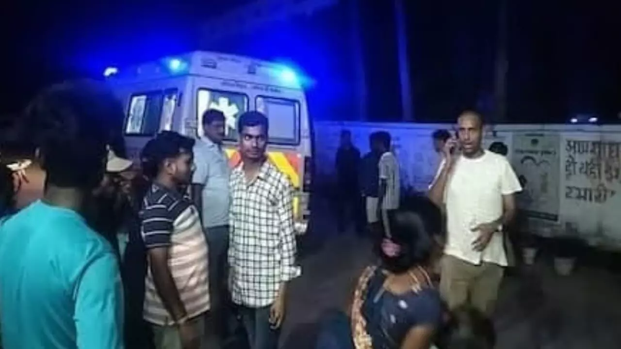 घटनास्थल पर खड़ी एंबुलेंस और मौजूद लोग। इमेज-सोशल मीडिया।