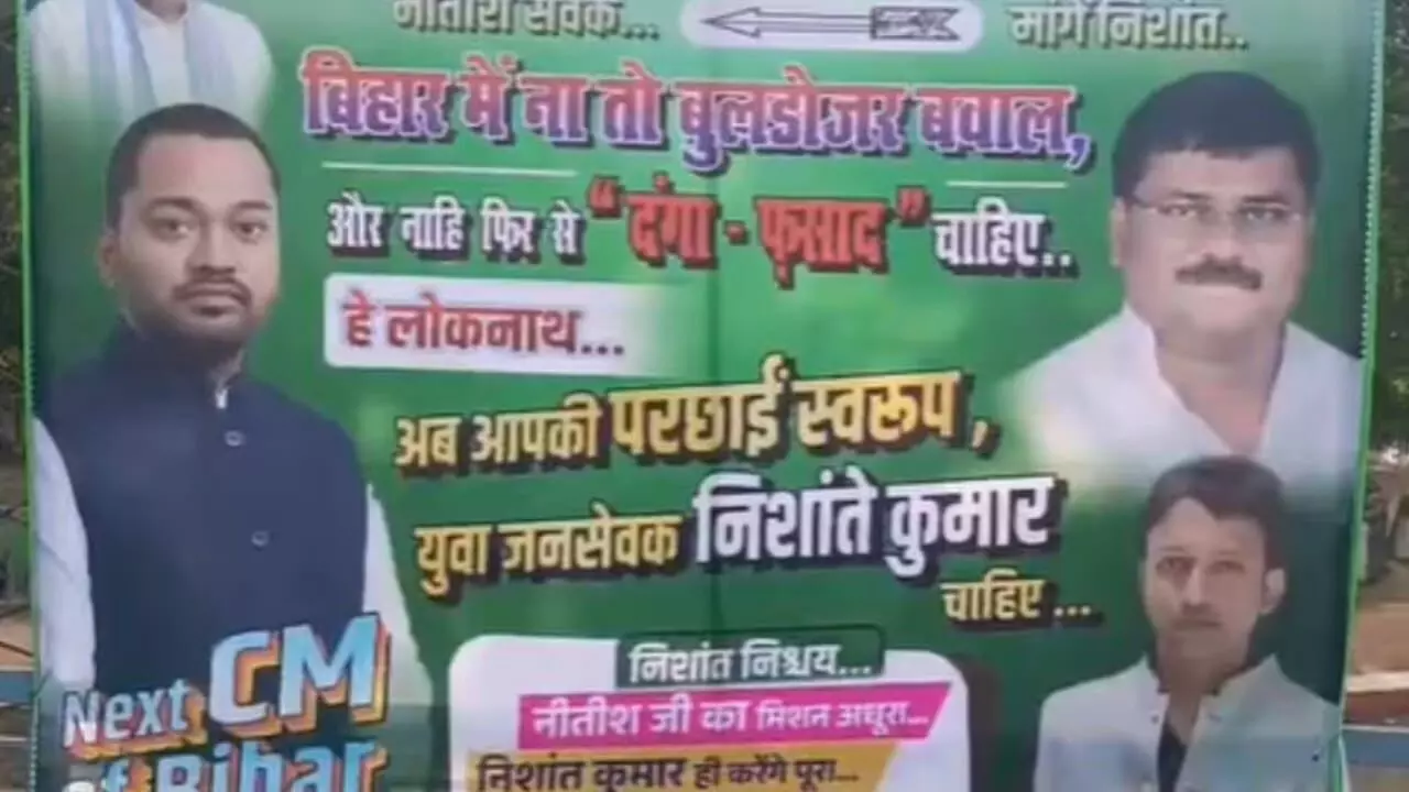 आज सीएम हाउस के बाहर जदयू कार्यकर्ताओं ने पोस्टर लगाया है। इस पर लिखा है- बिहार में ना तो बुलडोजर बवाल और ना फिर से दंगा-फसाद चाहिए। अब आपकी परछाई स्वरूप, युवा जनसेवक निशांते कुमार चाहिए। सीधा निशांत कुमार को सीएम बनाने की मांग की गई है।