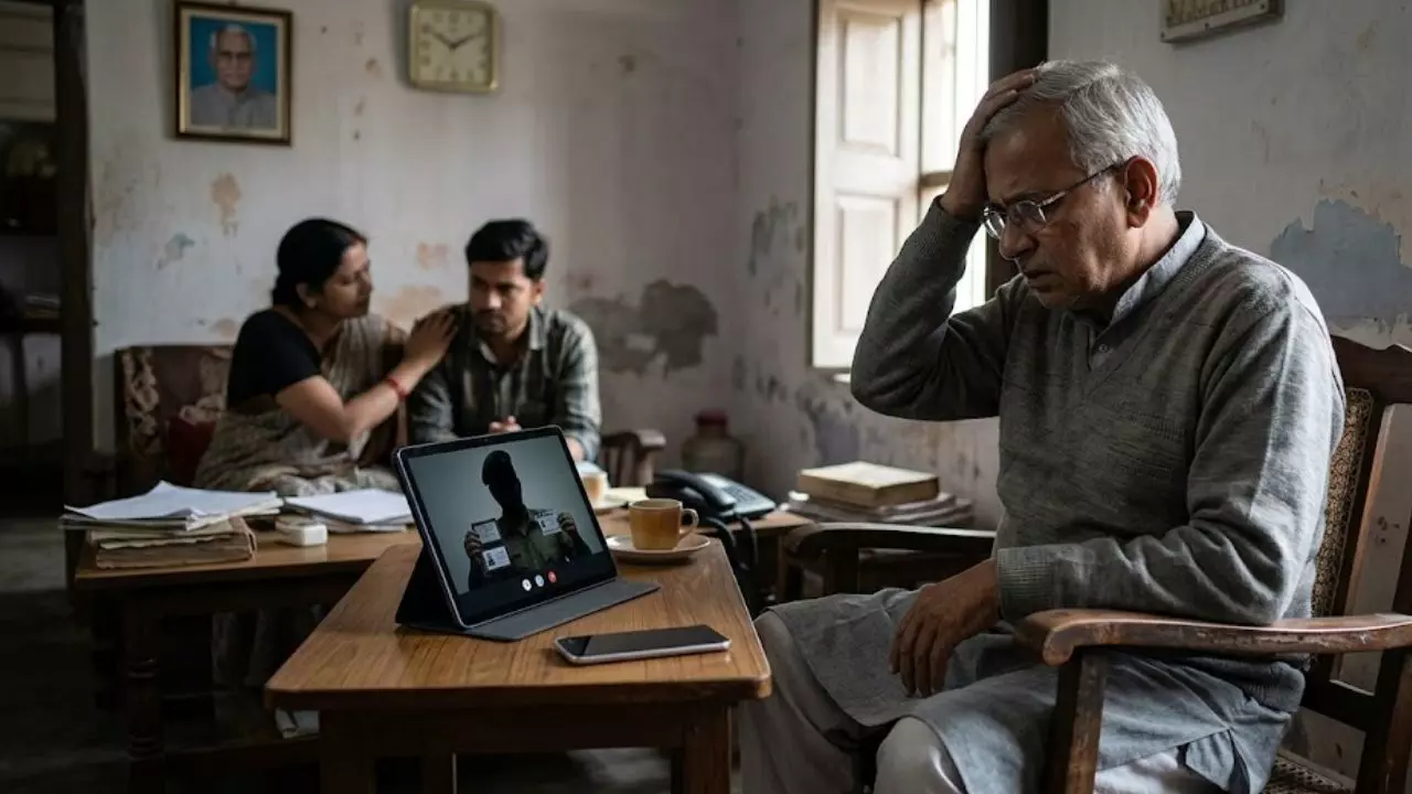 रिटायर्ड शिक्षक डिजिटल अरेस्ट। इमेज-एआई।