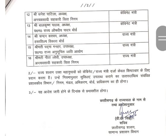 कैबिनेट मंत्री का दर्जा ब्रेकिंग: राज्य सरकार ने 13 निगम, मंडल अध्यक्षों को दिया कैबिनेट मंत्री और 3 को दिया राज्य मंत्री का दर्जा, देखिए आदेश किसको मिला कैबिनेट और राज्य मंत्री का ओहदा