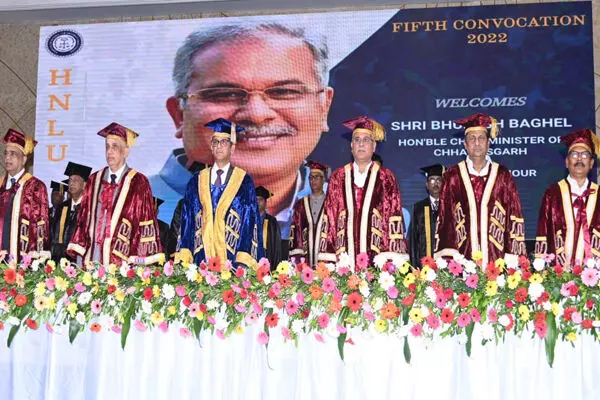 दीक्षांत समारोह में मुख्यमंत्री भूपेश बघेल विशिष्ट अतिथि के रूप में सम्मिलित हुए। मुख्यमंत्री बघेल ने हिदायतुल्ला नेशनल लॉ यूनिवर्सिटी के जर्नल लॉ एंड सोशल साइंस के छठें संस्करण का विमोचन करते हुए गोल्ड मेडलिस्ट छात्रो को उपाधि वितरित की एवं उनके उज्ज्वल भविष्य के लिए शुभकामनाएं दीं।
