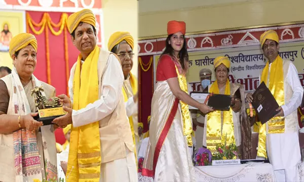 बिलासपुर 20 अप्रैल 2022। गुरू घासीदास केन्द्रीय विश्वविद्यालय, बिलासपुर का नवम दीक्षांत समारोह आज आयोजित किया गया। दीक्षांत समारोह की मुख्य अतिथि सुश्री अनुसुईया उइके राज्यपाल, छत्तीसगढ ने अपने दीक्षांत उद्बोधन में कहा कि गुरू घासीदास केन्द्रीय विश्वविद्यालय के नौवें दीक्षांत समारोह में शामिल होकर वे अत्यंत गौरवान्वित महसूस कर रही हैं। उन्होंने विश्वविद्यालय से अध्ययनपूर्ण कर उपाधि एवं पदक प्राप्त कर रहे समस्त विद्यार्थियों, शोधार्थियों और उनके अभिभावकों को असीम शुभकामनाएं दीं। उन्होंने विद्यार्थियों से कहा कि दीक्षांत, दीक्षा का अंत नहीं है बल्कि यह दीक्षा का प्रारंभ है। इसके बाद आपको जीवन के नए क्षेत्रों में प्रवेश करना है। वहां आपको जीवन के नए अनुभवों को सीखने का मौका मिलेगा। अध्ययन का काल हमारे जीवन का अत्यंत महत्वपूर्ण समय होता है। इस समय हमारे अंदर संस्कारों का निर्माण और क्षमताओं का विकास होता है। शिक्षा हमें संस्कारवान, सौम्य और संयमी बनाती है। हमें समाज में पद, प्रतिष्ठा और संपदा दिलाती है। ज्ञान वह अस्त्र है जो हमें जीवन में कठिनाइयों से लड़कर आगे बढ़ने की राह दिखाता है। उन्होंने कहा कि जब हम अच्छे आचार-विचार और मानवीय संवेदना से कार्य करते हैं तो सफलता अवश्य मिलती है। राज्यपाल ने गुरु घासीदास विश्वविद्यालय के विकास कार्यों के लिए कुलपति प्रो. ओलाक कुमार चक्रवाल की सराहना की।
