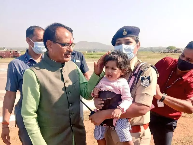 लखनऊ 21 अक्टूबर 2021. मुख्यमंत्री शिवराज सिंह के अलीराजपुर दौरे के दौरान डीएसपी मोनिका सिंह अपनी डेढ़ साल की बेटी को गोद में लिए ड्यूटी पर तैनात थीं. मुख्यमंत्री की नजर जब डीएसपी मोनिका और उनकी बेटी पर पड़ी तो वो उनके पास पहुंचे और उनके जज्बे की तारीफ की.