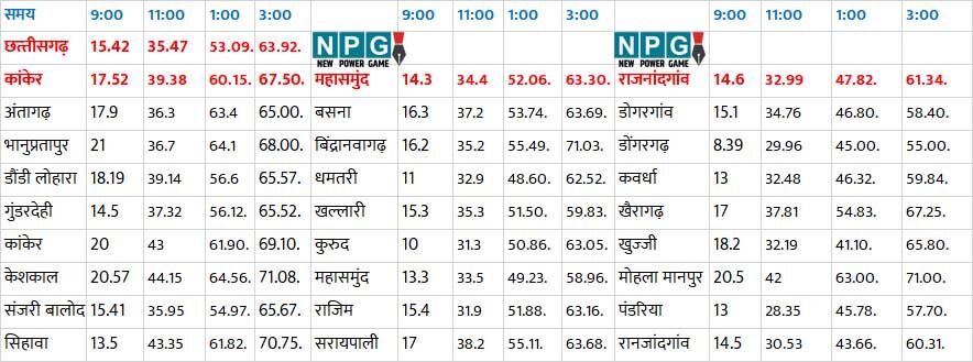 दोपहर में तेज गर्मी का राज्य के वोटरों के उत्साह पर कोई विशेष असर नहीं दिखा। दोपहर में मतदान की रफ्तार तेज रही। राज्य में 3 बजे तक 64 प्रतिशत से अधिक मतदान हो चुका है। कांकेर अब भी मतदान में सबसे आगे है। वहां 67.50 प्रतिशत वोट डाले जा चुके हैं। कांकेर संसदीय क्षेत्र में शामिल केशकाल और सिहावा में वोटिंग का आंकड़ा 71 प्रतिशत तक पहुंच चुका है। वहीं, महासमुंद में 63 प्रतिशत और राजनांदगांव में 61 प्रतिशत मतदान हुआ है। बिंद्रानवागढ़ और मोहला-मानपुर में भी 70 प्रतिशत मतदान हो चुका है।