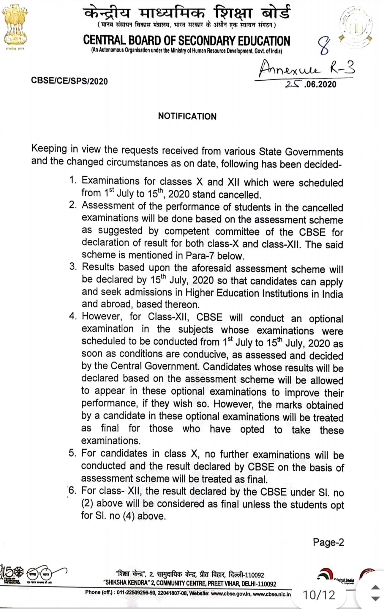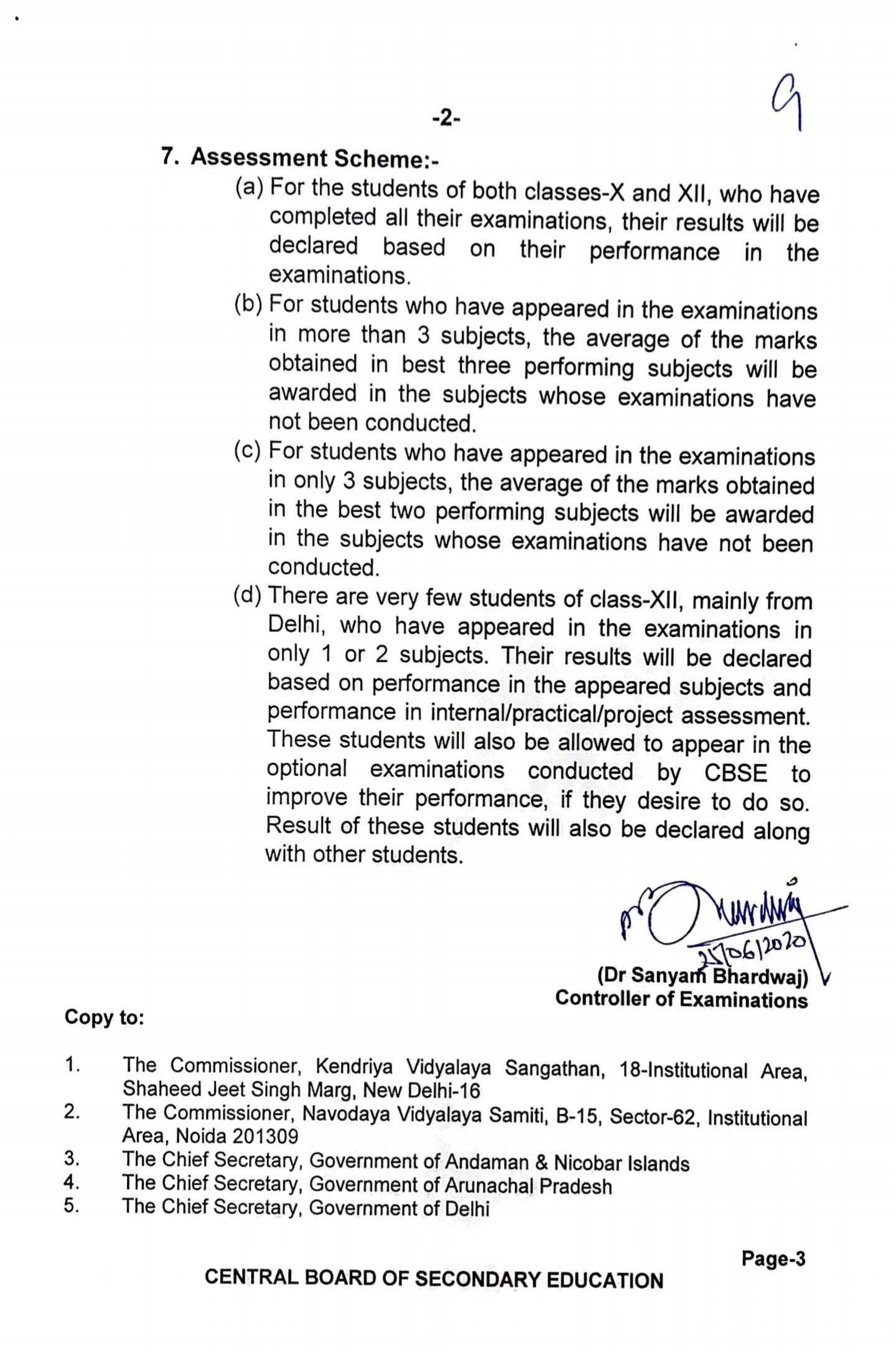सीबीएसई ने परीक्षाओं को लेकर नोटिफिकेशन प्रस्तुत किया। जिसमें मार्किंग सिस्टम आदि की पूरी जानकारी दी गयी है। इसके अनुसार सीबीएसई बोर्ड की परीक्षाओं के परिणाम 15 जुलाई तक घोषित होंगे और मार्किंग सीबीएसई द्वारा आज जारी नियमों के अऩुसार होगी।
