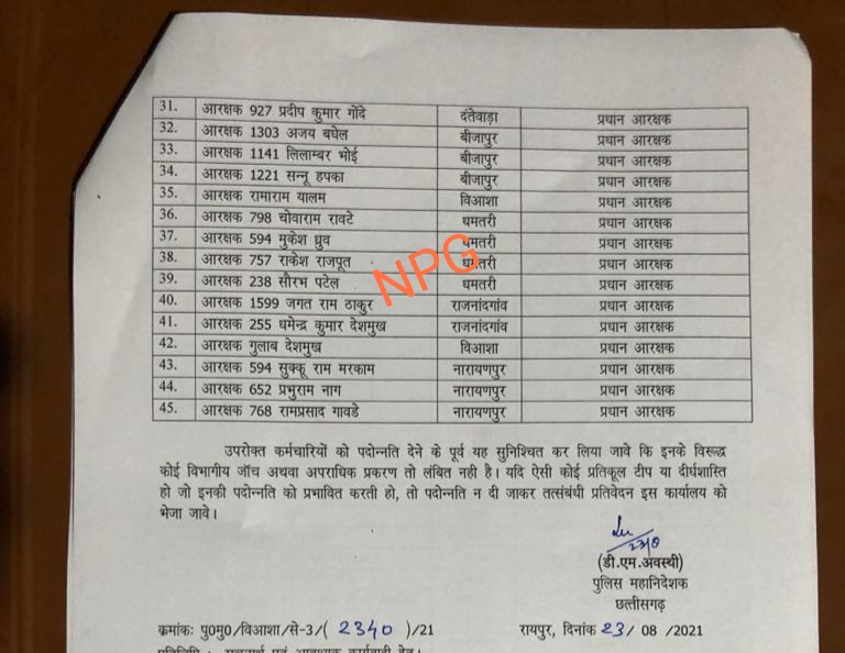 आउट आफ टर्न प्रमोशन जिन पुलिसकर्मियों को मिला है, उनमें 8 SI को निरीक्षक, दो ASI को सब इंस्पेक्टर, 5 हेड कांस्टेबल को ASI बनाया गया है। वहीं 30 कांस्टेबल को हेड कांस्टेबल बनाया गया है।