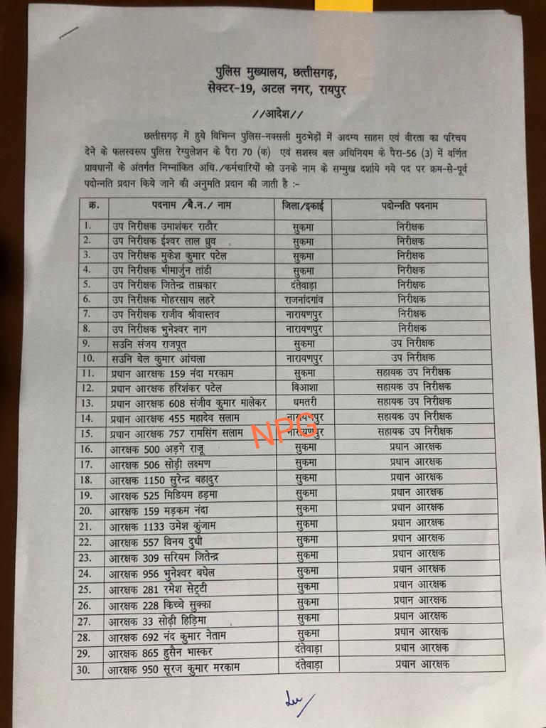 जिन पुलिसकर्मियों को आउट ऑफ टर्न प्रमोशन मिला है, उसमें कांस्टेबल, हेड कांस्टेबल, ASI और SI स्तर के अधिकारी शामिल हैं। आउट ऑफ टर्न प्रमोशन पाने वालों में ज्यादातर पुलिसकर्मी बस्तर के सुकमा, नारायणपुर, बीजापुर जैसे सुदूर इलाकों में पदस्थ थे।