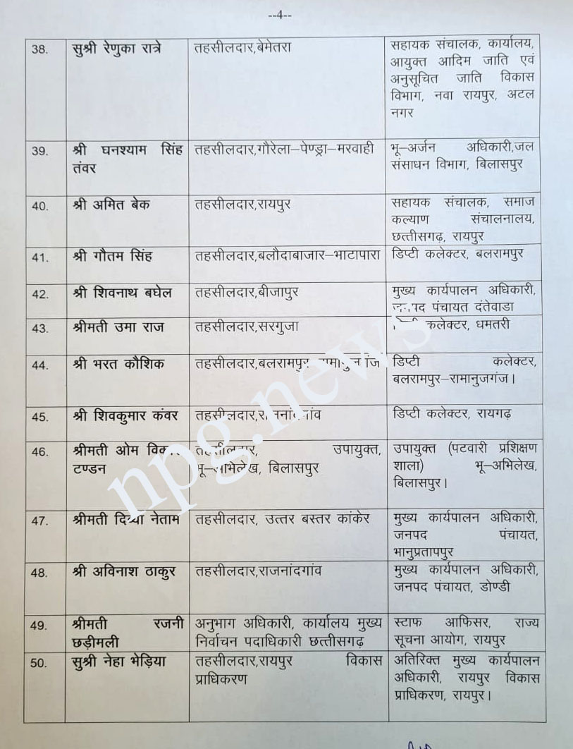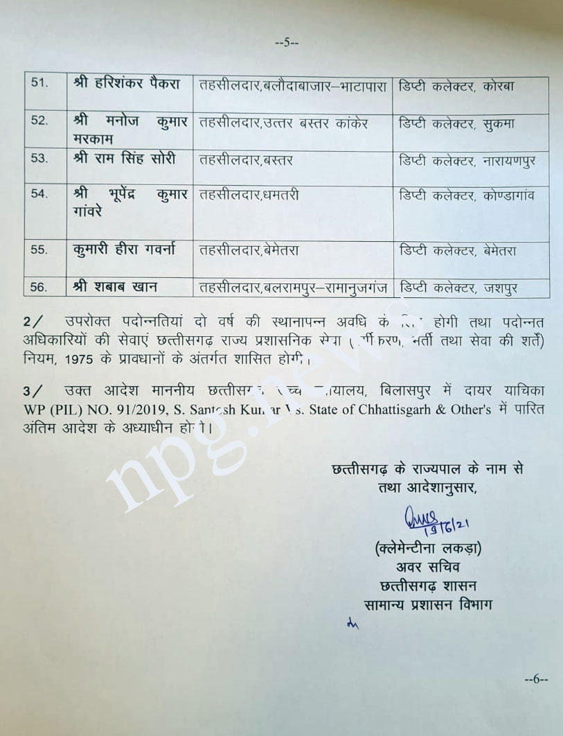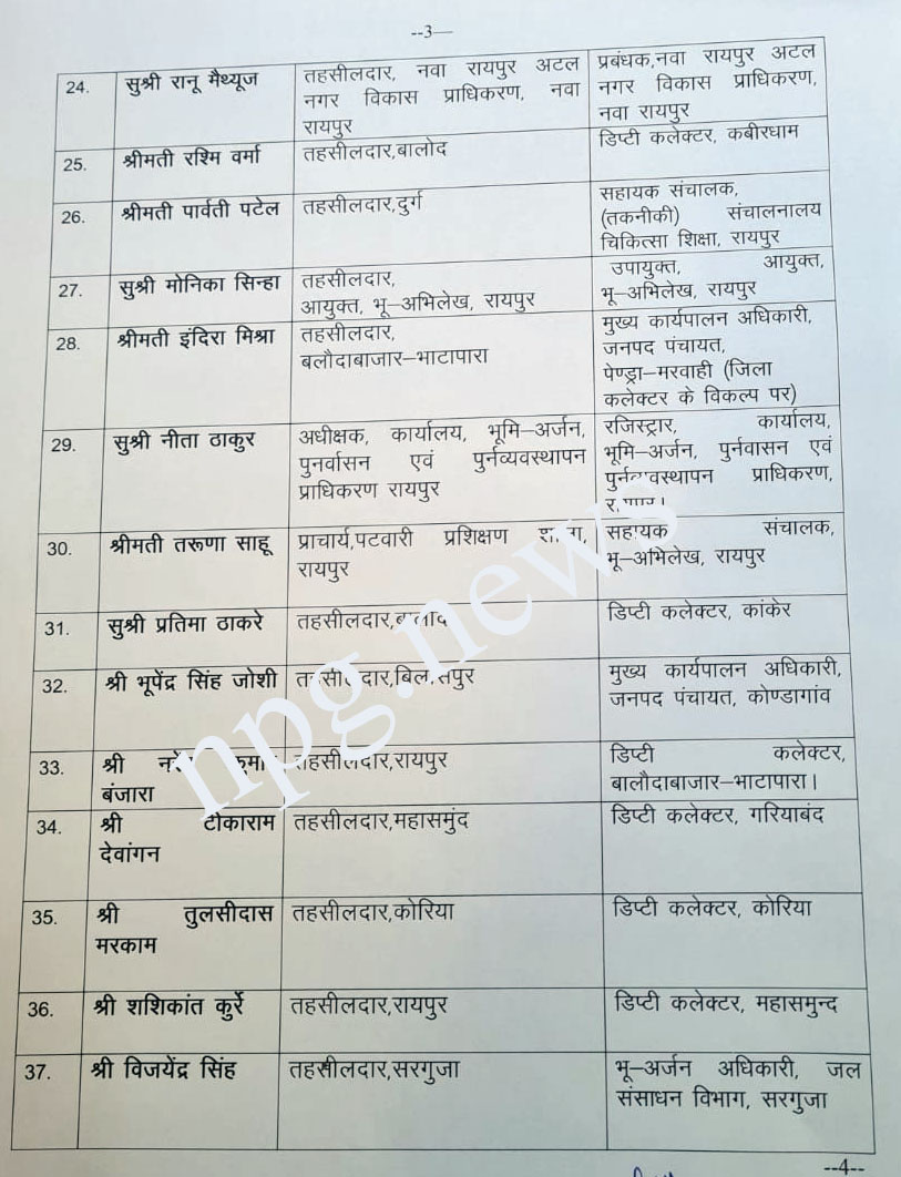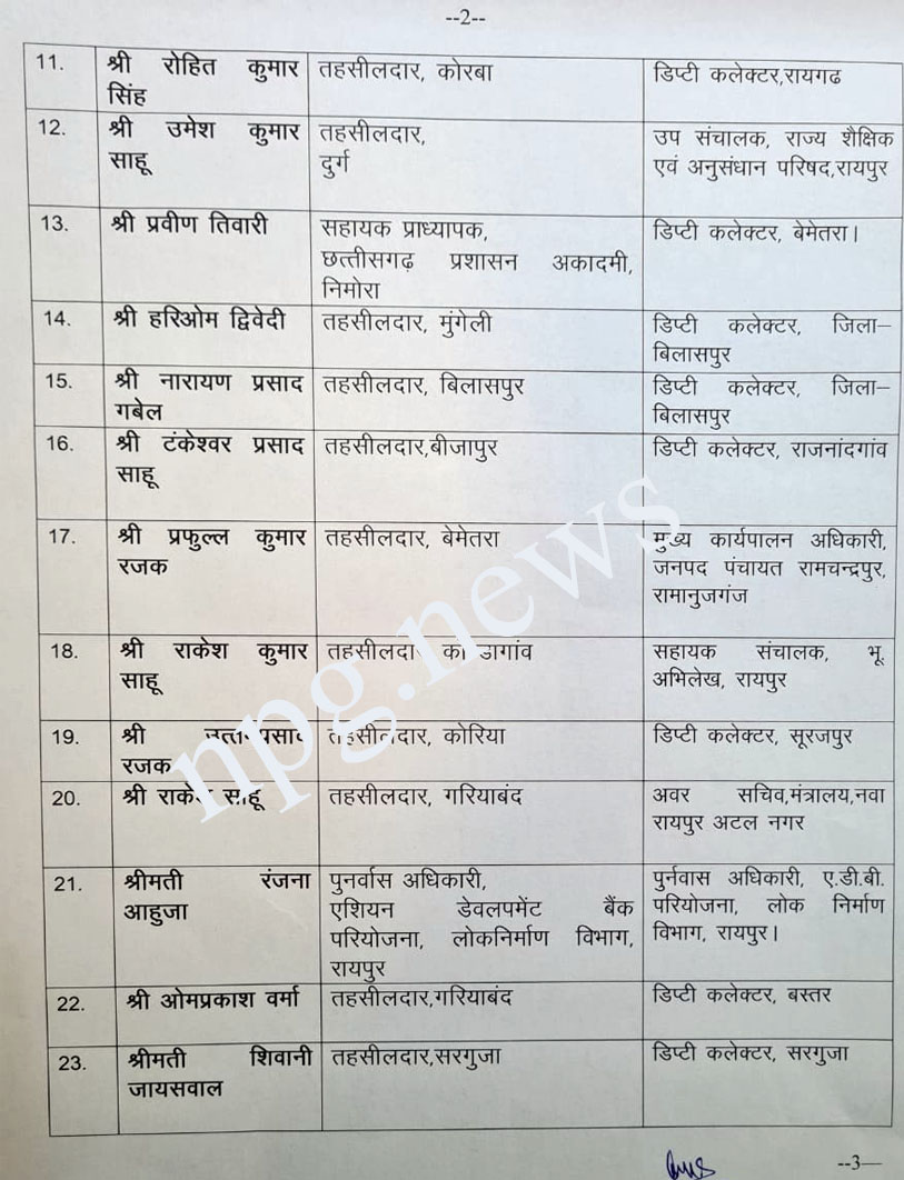 CG ट्रांसफर बिग ब्रेकिंग : 56 तहसीलदार प्रमोशन के बाद डिप्टी कलेक्टर बने….प्रमोशन के साथ ट्रांसफर आर्डर भी जारी… कईयों को जनपद पंचायत सीईओ बनाया गया… पूरी लिस्ट देखिये…
