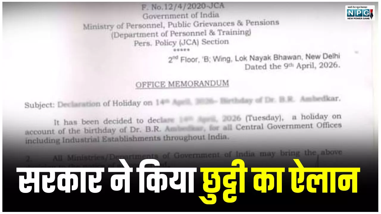 Ambedkar Jayanti Holiday: छुट्टी का आदेश: केंद्र सरकार ने किया छुट्टी का ऐलान, देखिये आदेश