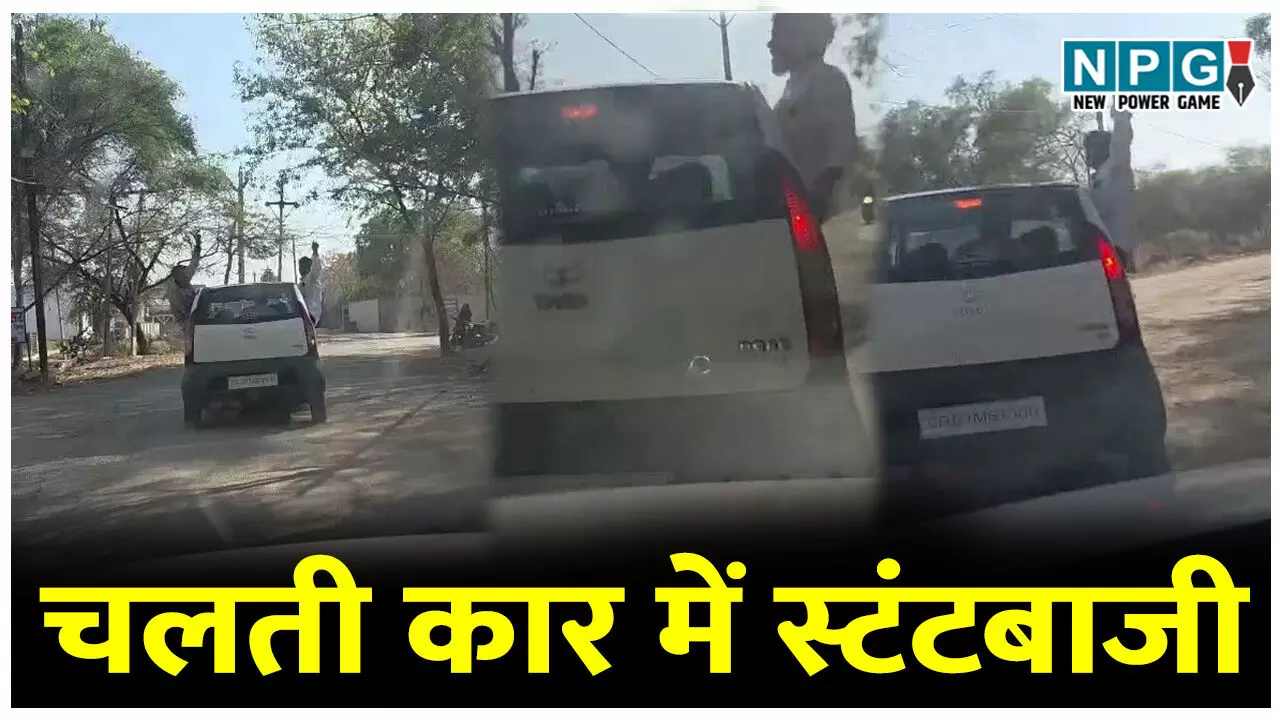 चलती कार में स्टंटबाजी....खिड़की से बाहर निकलकर जानलेवा स्टंट करते दिखे युवक
