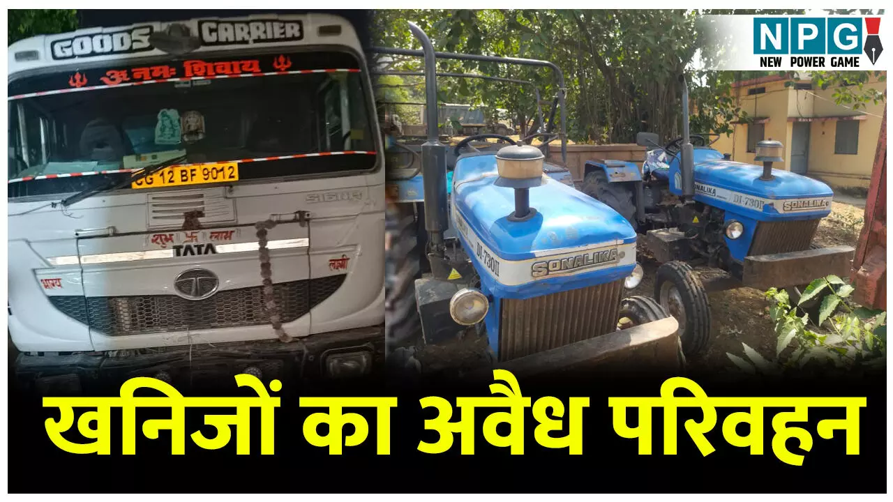खनिजों का अवैध परिवहन: 2 हाइवा व 6 ट्रैक्टर-ट्रॉली जब्त,थाने में रखे वाहन