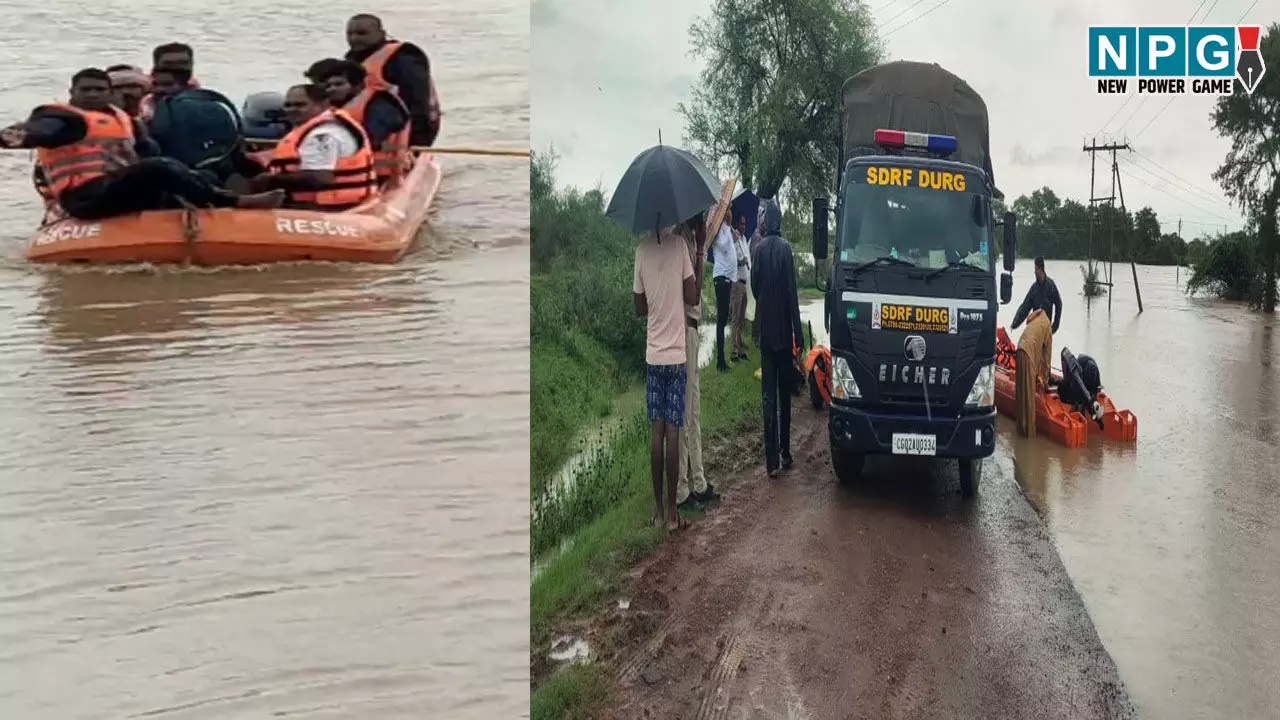 बुधवार तकरीबन 9:30 बजे पुलिस को सूचना प्राप्त हुई थी कि कछार नाला ग्राम थनौद चौकी अंजोरा में अत्यधिक बारिश आने से भारत माला हाईवे प्रोजेक्ट में काम करने वाले लगभग 20-25 मजदूर नाला के उस पार बाढ़ में फंस गये हैं।ब जिसकी सूचना मिलते ही तत्काल SDRF एसडीआरएफ की टीम को सूचित किया गया जो मौके पर रेस्क्यू बोट एवं लाईफ जैकेट लेकर पहुंचे और बाढ़ में फंसे हुये 32 मजदूरों एवं बच्चों को जो अलग-अलग राज्यों से काम करने के लिये आए हुए थे,सभी को सुरक्षित बाहर निकाला गया।