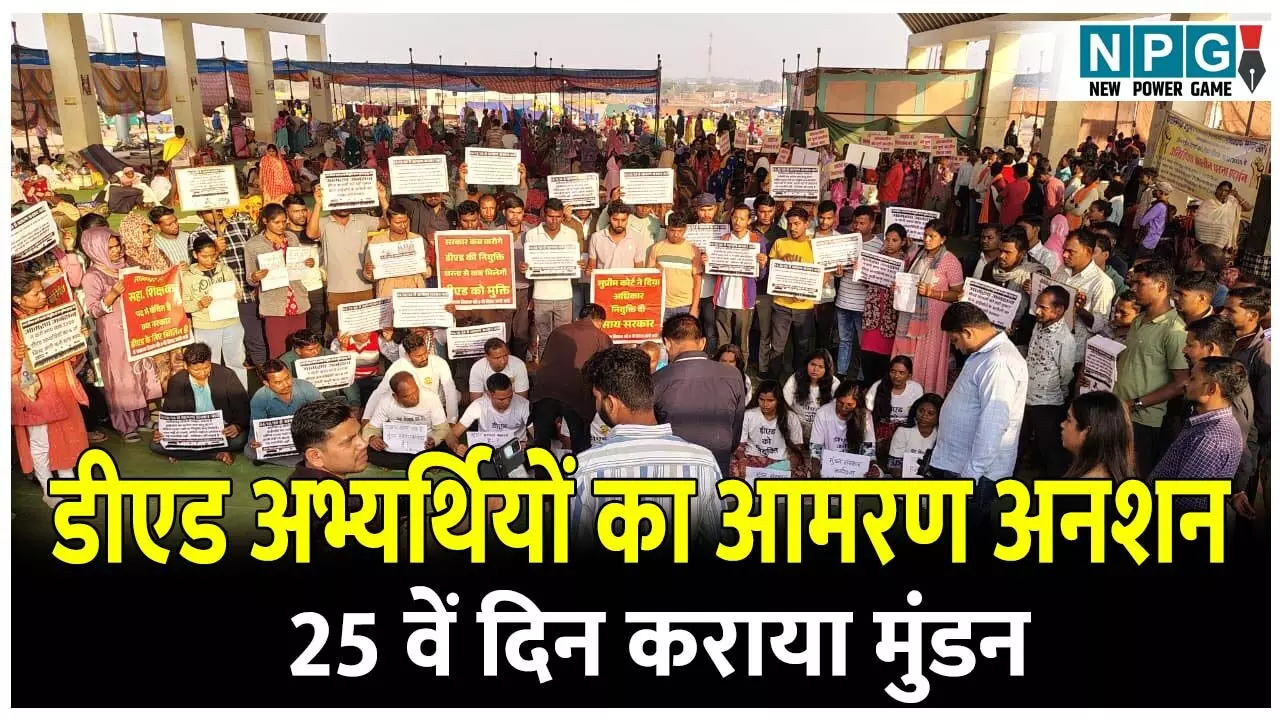 CG News: नियुक्ति नहीं मिलने पर डीएड प्रशिक्षित अभ्यर्थियों का आमरण अनशन जारी है। अनशन के 25 वें दिन अभ्यर्थियों ने सामूहिक मुंडन करवाया।