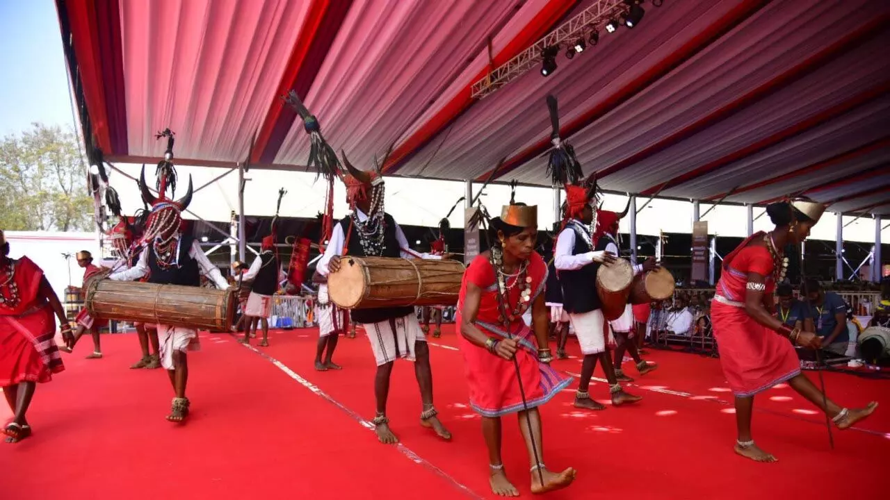 बास्तानार के युवाओं द्वारा प्रस्तुत यह नृत्य केवल एक सांस्कृतिक प्रदर्शन भर नहीं था, बल्कि ‘दंडामी माड़िया’ (बाइसन हॉर्न माड़िया) जनजाति की परंपराओं, जीवन-दर्शन और सांस्कृतिक चेतना का एक जीवंत दस्तावेज था। जैसे ही नर्तक दल मंच पर उतरा, उनकी विशिष्ट वेशभूषा ने उपस्थित जनसमूह का ध्यान सहज ही अपनी ओर आकर्षित कर लिया।