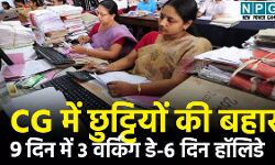 CG Holiday News: अक्टूबर का कैलेंडर आपको याद हो तो, तब महीने में तकरीबन 21 दिन की छुट्टी पड़ी थी। तब बैंकों में भी हालिडे था। मार्च के आखिरी सप्ताह और अप्रैल के पहले सप्ताह पर नजर डालें तो नौ दिन में महज तीन दिन वर्किंग डे और पूरे छह दिन अवकाश। लगातार पड़ रही छुट्टियों को लेकर अब एक बड़ा सवाल यह उठ रहा है, ऐसे में सरकार का गुड गर्वनेंस कैसे चलेगा। आम लोगों की दिक्कतें कैसे दूर हाेंगी। दफ्तर बंद रहेगा तो फाइलें कैसे एक से दूसरे टेबल मूव करेंगी?