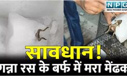 सावधान! गन्ना रस के बर्फ में मिला मरा मेंढक, बर्फ तोड़ते समय दिखा मेंढक