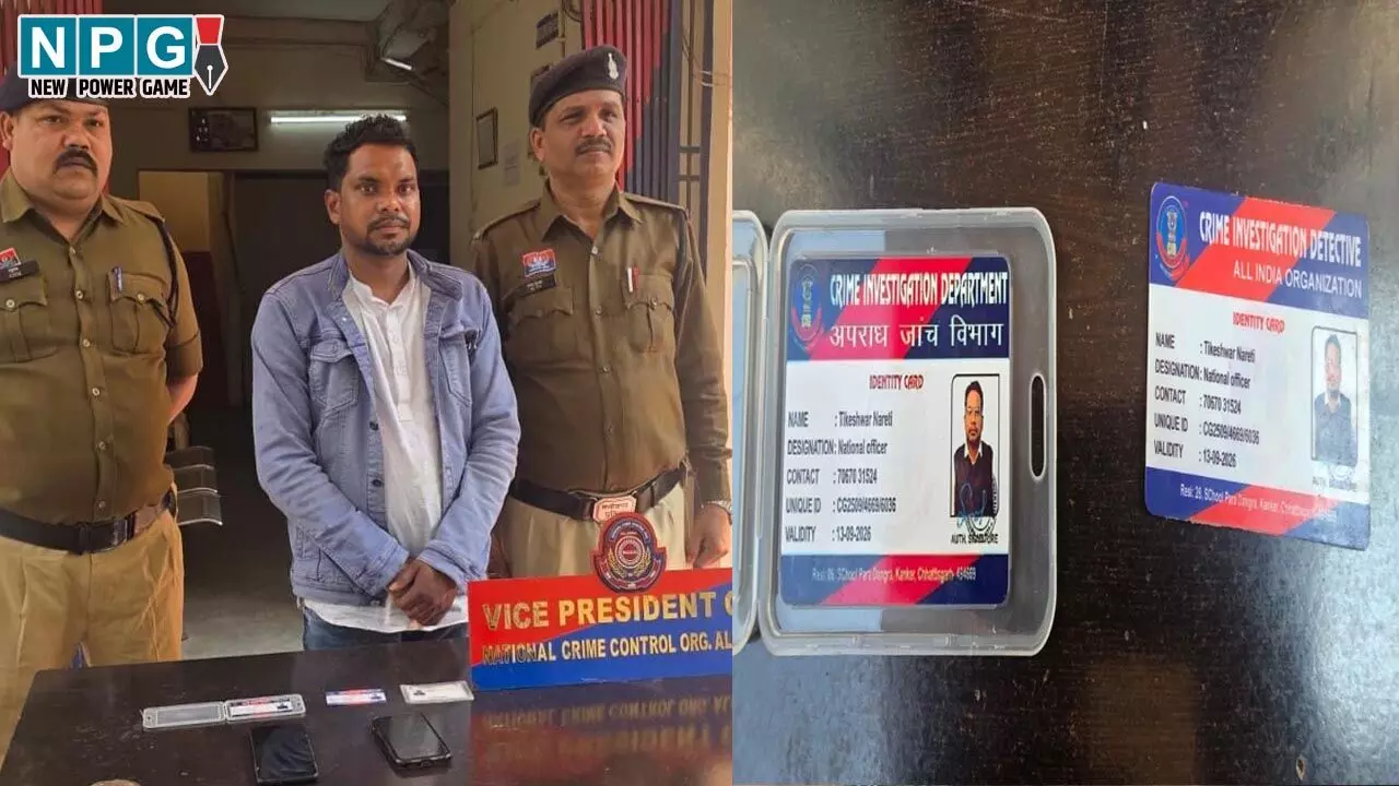 इस सूचना पर तत्काल पुलिस टीम मौके के लिए रवाना हुई। मौके पर पहुंचकर जांच की गई। वाहन के डैशबोर्ड पर लोगो व पदनाम बोर्ड पाया गया। वाहन चालक से पूछताछ करने पर उसने अपना नाम टिकेश्वर नरेटी पिता सगराम नरेटी 28 वर्ष निवासी ग्राम डांगरा थाना दुर्गकोंदल कांकेर का बताया। पूछताछ के दौरान आरोपी ने अपने पास रखे दो आईडी कार्ड पुलिस को दिखाया।
