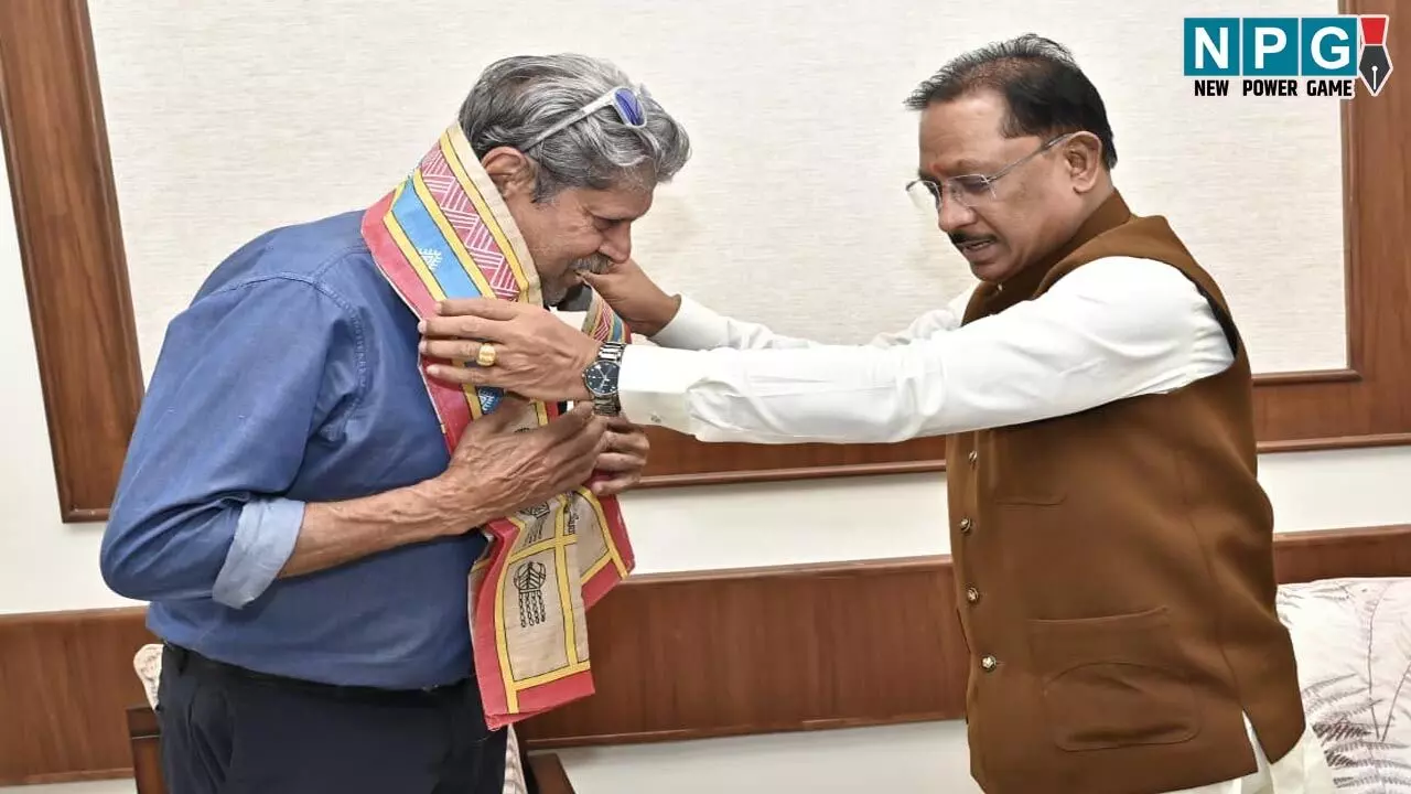 Kapil Dev in Raipur: रायपुर। भारतीय क्रिकेट टीम के पूर्व कप्तान कपिल देव ने मुख्यमंत्री विष्णुदेव से नया रायपुर स्थित सीएम हाउस में मुलाकात की। मुख्यमंत्री ने कपिल देव को बेल मेटल से बनी प्रतिकृति, पुण्यभूमि छत्तीसगढ़ कॉफी टेबल बुक भेंट कर उनका अभिनंदन किया।