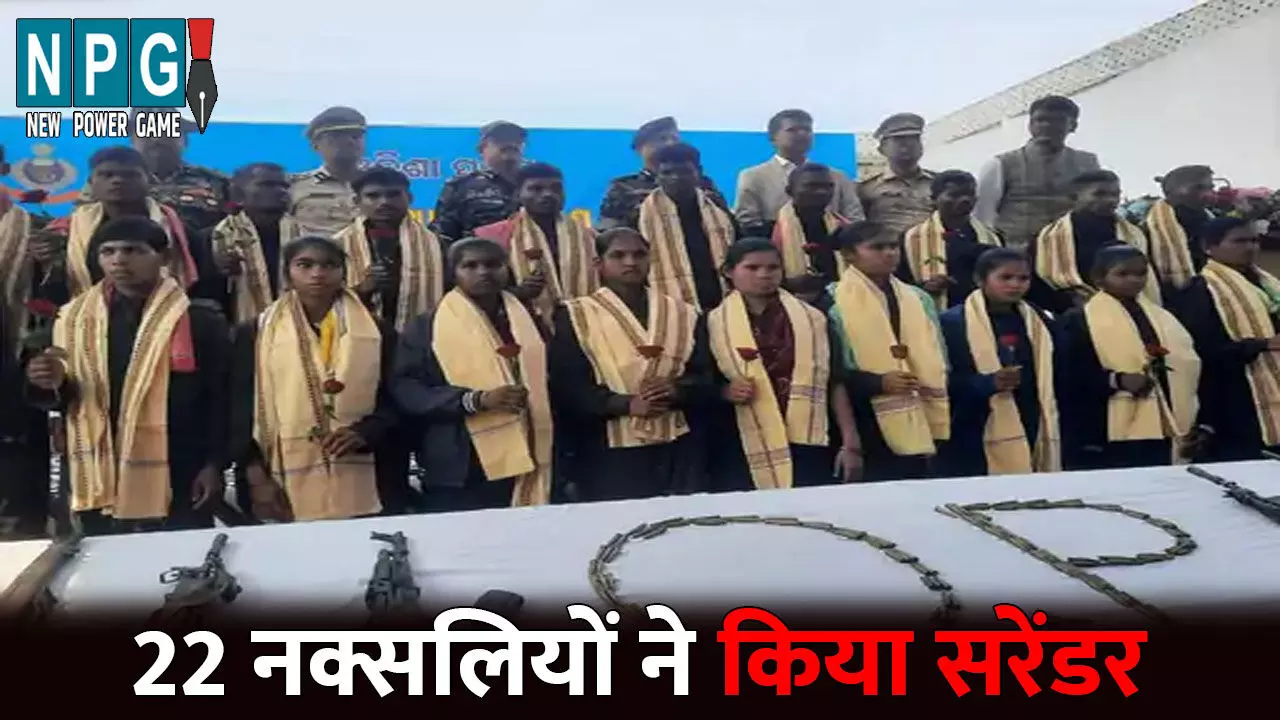 राज्य सरकार की ओर से आत्मसर्पण और पुणर्वास नीति अभियान चलाया जा रहा है। इसी अभियान के तहत एक बड़ी सफलता हाथ लगी है। दरअसल, नक्सल संगठन के तीन स्पेशल जोनल कमेटी के 22 नक्सलियों ने उड़िसा DGP के सामने मंगलवार को सरेंडर किया है। बताया जा रहा है कि इन नक्सलियों पर 1 करोड़ 84 लाख 25 हजार रूपए का ईनाम घोषित था।