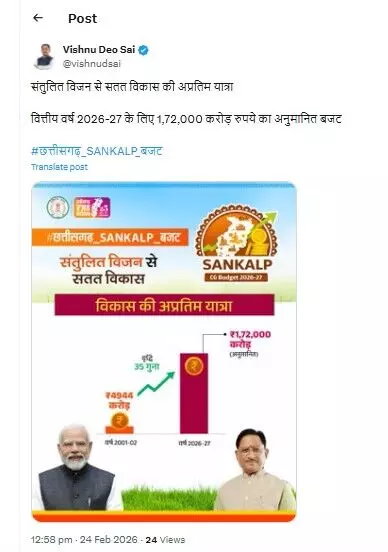 वित्त मंत्री ओपी चौधरी ने आज 1 लाख 72 करोड़ का बजट पेश किया। मुख्यमंत्री विष्णुदेव साय ने ट्वीट कर छत्तीसगढ़ के विकास के लिए संतुलित बजट बताया है।