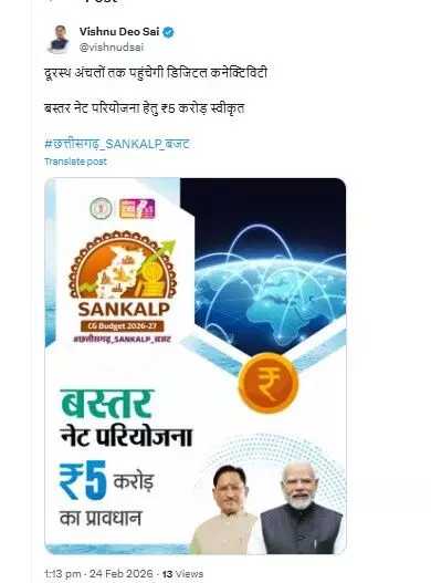 मुख्यमंत्री ने X पोस्ट कर कहा...दूरस्थ अंचलों तक पहुंचेगी डिजिटल कनेक्टिविटी, बस्तर नेट परियोजना हेतु ₹5 करोड़ स्वीकृत