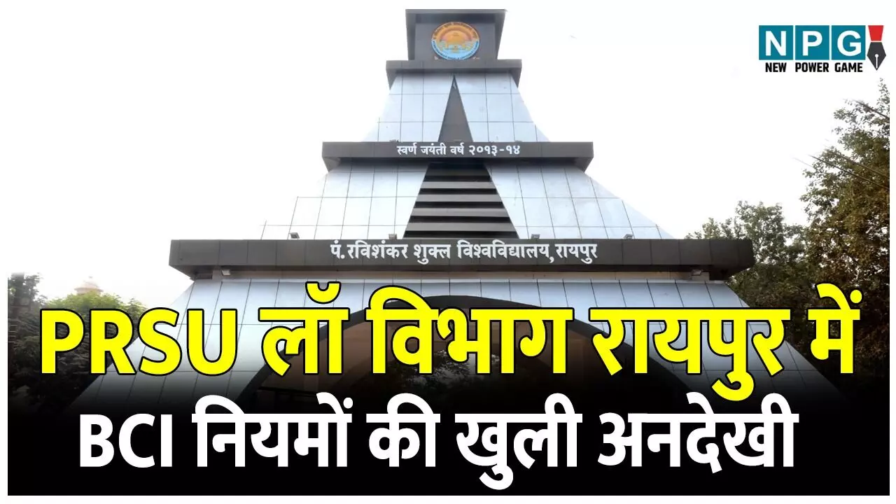 रायपुर, 17 दिसंबर 2025: छत्तीसगढ़ की सबसे बड़ी यूनिवर्सिटी पंडित रविशंकर शुक्ल विश्वविद्यालय (PRSU) के स्कूल ऑफ स्टडीज इन लॉ में कानून शिक्षा के मानकों को लेकर गंभीर सवाल खड़े हो गए हैं। बार काउंसिल ऑफ इंडिया (BCI) की सख्त चेतावनी के बावजूद दिसंबर 2025 तक नियमों का पालन नहीं किया गया है। सबसे अहम मामला यह है कि फिजिकल एजुकेशन में पीएचडी रखने वाले प्रोफेसर डॉ. राजीव चौधरी अब भी लॉ विभाग के हेड के रूप में कार्यरत हैं जबकि BCI ने उन्हें इस पद से हटाने और विधि में योग्य नियमित प्रमुख की नियुक्ति का स्पष्ट निर्देश दिया था
